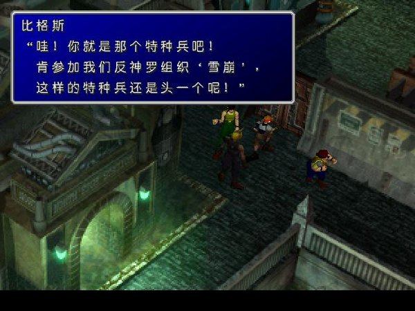 游戲中提出了一些系統,例如世界地圖系統可讓人隨時了解所處的位置,朝什麼方向走,還 可以看到城鎮和村莊的分布情況。從一個村莊走到另一個村莊時,處於山野系統中。在這個 系統中用各種不同的視野來表現工廠、村莊、酒吧、山路、港灣、舟船、隱蔽點和各種相關 的場所。菜單系統用於查看和使用裝備、存檔或者管理隊伍。游戲中的隊伍大多時間裡是3 個人,敵人的編組也最多不超過6個。每個出場的主角可以使用的有基本攻擊、施展魔法, 或使用物品。戰斗節奏非常快,作戰方式兼有即時制和回合制的特點,也就是在布置我方隊 員的指令所需的時間結束時,不管布置完成沒有,敵人就已經發起進攻了。游戲在戰斗系統 中突出了資源的戰略重要性,這些資源通過尋找或購買,裝配在主角的武器或裝甲上,使武 器的性能發生變化。例如在“雲”(Cloud)的劍上配上火系的魔晶石,就可發出火術攻擊。 加裝火系的防護物品就能防御敵方的火系攻擊術。每次使用後,火系魔晶石的能力會逐漸增 加,最後可修煉成最高級的火術。