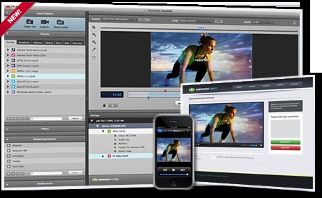 Sorenson Squeeze套裝 為一般與專業制作人設計的視頻壓縮工具,可以編碼壓縮並透過CD、Internet、IP網絡、或是其它消費性數字視頻設備傳送高質量的視頻內容。包含Sorenson Video3 Pro, Sorenson Spark Pro, Sorenson MPEG-4 Pro 和 Sorenson AVC Pro videocodecs。一款功能強勁的視頻壓縮工具,支持眾多格式導入導出,特別是可以導出高質量的FLV.SWF.以及mov.wmv格式文件。